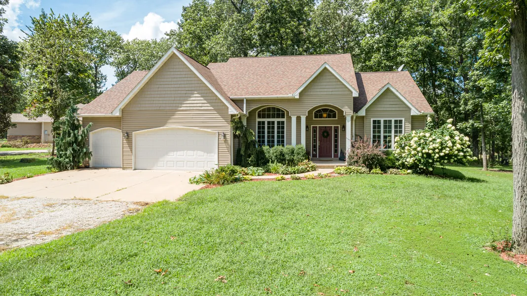 KEEP SHOWING! PREPARE TO BE "WOWED", as you step into the front foyer of this spacious, open concept home, located at Day Spring Estates subdivision. The main level features hand carved teak floors & a view of the shared, stocked, 5 acre pond. In the kitchen you will find granite countertops, tile backsplash, soft close drawers, double oven & stainless steel appliances. Master bedroom with tray ceiling and en suite has dual sink custom vanity, jetted tub, separate shower, & walk-in closet. On the other side of the main level are the two additional bedrooms with their own sinks & shared Jack & Jill bathroom. There's also a main level laundry room, half bath & 3 car attached garage. On the lower level of the home is an entertainment space with a bar, 4th bedroom, full bathroom, den/office, 3 storage areas & playroom. Outside you can relax on the back deck, or enjoy time at the water's edge firepit. Located just north of Lake Lou Yeager, this beautiful property is waiting for you to make it your own!