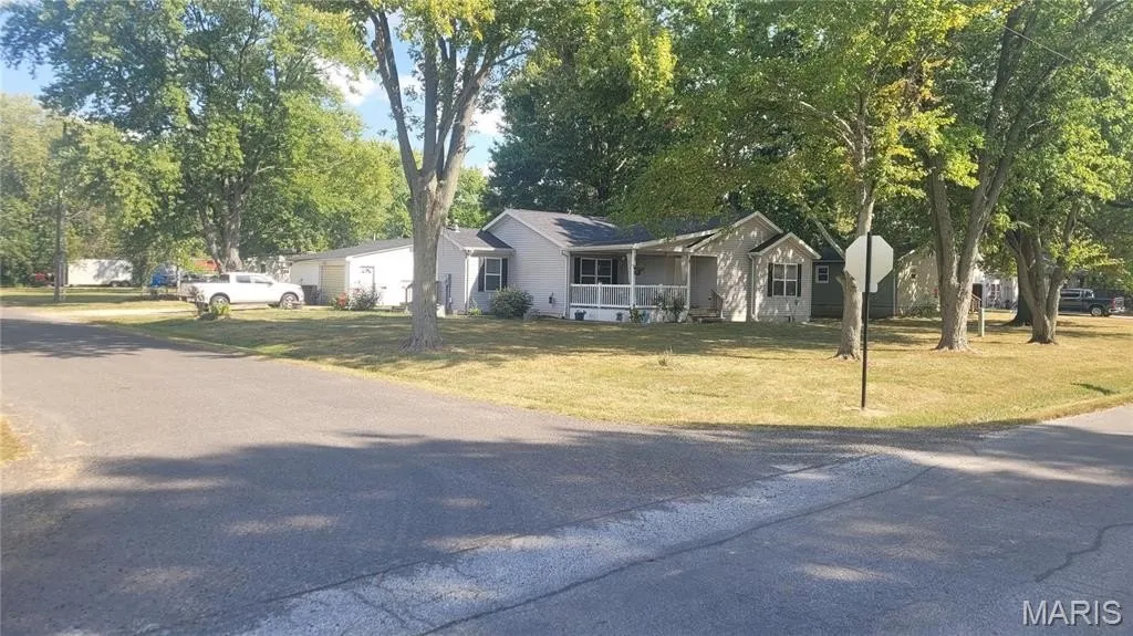 This beautiful home sits on 2 lots. The house has an open floor plan with a island bar between the kitchen and living room. Dining area off the kitchen with sliding glass doors out to the backyard. Master suite is separate from the other 2 bedrooms with a walk-in closet and large bathroom. Second bathroom is located by the other 2 bedroom and offers a shower/tub. The covered front porch offers a relaxing place for morning coffee or an evening beverage of choice. There is a detached 2 and half car garage with a work bench on one side. Call your favorite realtor to view this wonderful property.