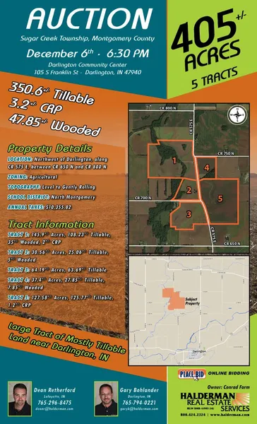 -Large tract of mostly tillable land near Darlington, IN