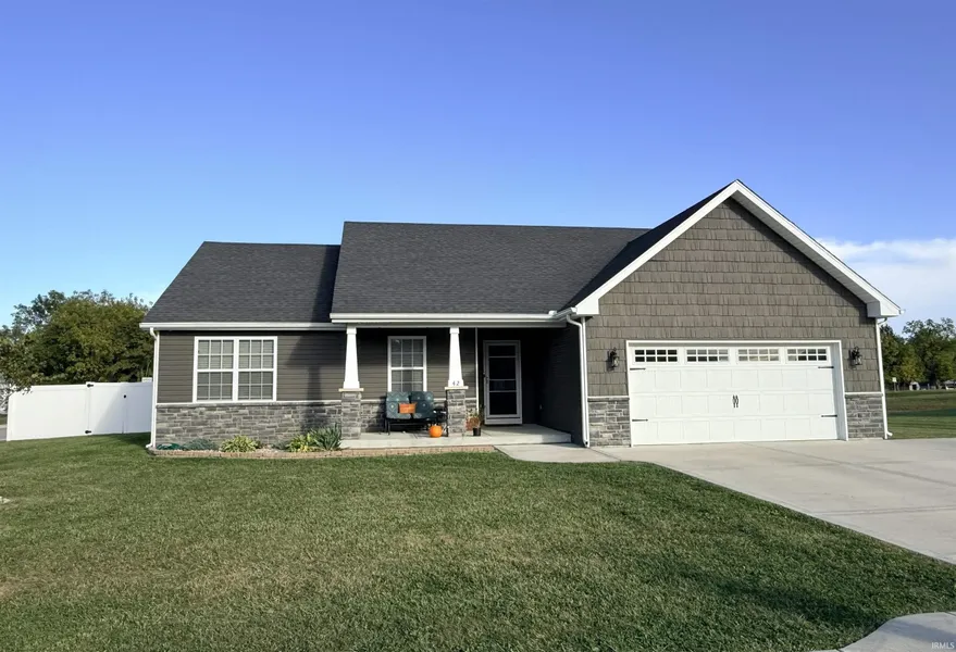 Move-in ready ranch home in Crawfordsville's desirable Diamond Ridge subdivision! Built in 2019, this 3-bedroom, 2-bath home offers 1,550 sq ft of modern single-level living with a low-maintenance lifestyle. The open floor plan features granite kitchen counters, a ceramic tile backsplash, and stainless-steel appliances. The private primary suite includes a walk-in tiled shower and generous closet space. Additional highlights include built-in eave lighting for year-round curb appeal, Bluetooth speaker lighting in the bath, and a spacious vinyl-fenced backyard-perfect for kids or pets. Attached 2-car garage for added convenience. HOT TUB INCLUDED! While Diamond Ridge is located in the North Montgomery School District, the neighborhood is uniquely served by both North Montgomery and South Montgomery school buses. Enjoy newer construction, community appeal, and modern single level living in Diamond Ridge!