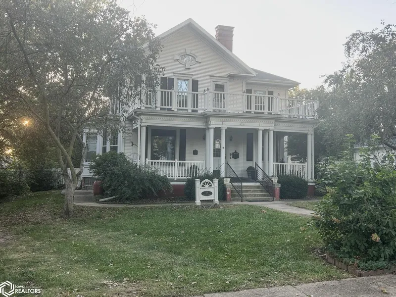 *NEW LOWER PRICE* You must see this 1855 Antebellum-style home in Villisca, IA. Over 2,900 sqft of gracious living, with quarter-sawn oak woodwork, 8 foot pocket doors, curved walls, a grand staircase, stain-glass windows, brass fixtures & 2 fireplaces. From the expansive 28'x10' front porch, enter into a foyer which opens into a receiving room with an ornate fireplace, desk nook, coat closet & a magnificent stairway to the 2nd floor. Pocket doors on the left lead to a room suitable for a ground-floor bedroom/office/parlor with a curved window seat. More pocket doors lead to the formal dining room, large enough to serve as another living space which features stain-glass windows & leads through more pocket doors to the den with its wooden columns, ceiling beams & another ornate fireplace. From here an oak door opens into the kitchen with has a private entry porch that overlooks the side garden. Next to the kitchen is the large first floor full bath/laundry. From the kitchen, step out onto the back deck which holds a 12x12 screened-in gazebo. Upstairs, the 2nd floor landing is a cozy space suitable as a reading room or office space leading to 3 bedrooms & the upstairs full bath with a large linen closet & access to two of the bedrooms. Outside, stroll the 27,000 sq ft grounds which feature a large 24'x24' 2-car garage, a 12'x18' garden shed/workshop & meandering paths, trellises, & mature trees & plants. All house systems have been serviced & home is ready for your move in!