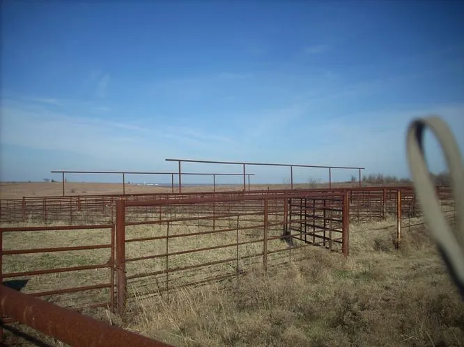 Good bluestem pasture with cross fencing and new pipe corral on Blacktop, pasture has been used for yearling intensive grazing program and has been sprayed for weeds and hedge sprouts.