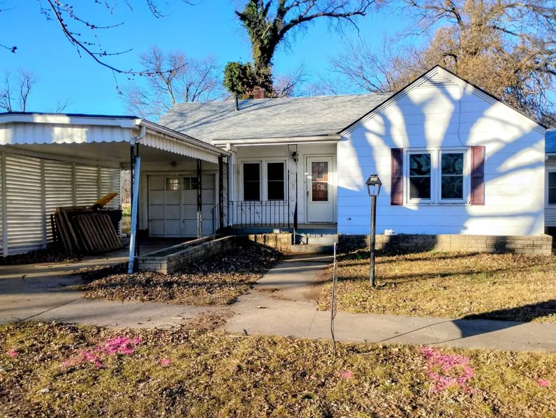 This inviting 2-bedroom home, with the option for a third, offers great versatility. It includes two main bedrooms and a full bath, plus a third room with a closet that could work as an extra bedroom, den, or office. This space also leads to the backyard and garage. The cozy eat-in kitchen features a gas range. The home is equipped with central heat and air through a split system, roof approximately 10 years old and updated vinyl windows. Hardwood floors in one bedroom and carpet in living and 2nd bedroom, seller believes there is hardwood under carpet as well. Attached garage with a carport, a partial basement accessible from the garage, and extra backyard storage building make it even more convenient, all in a quiet, well-established neighborhood.