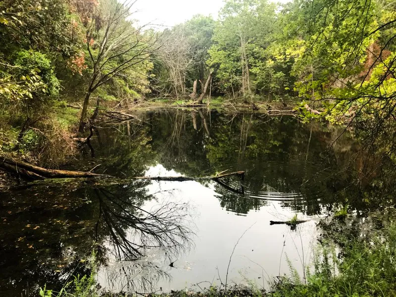 As you pull through the gate onto the gravel driveway you notice a powerline clearing running north/ south that you expect to see deer walking up and down. The thick woods that cover much of the property will be great habitat for them and the rest of the wildlife to call home. As the driveway winds to the north and back to the west the woods open up to a majestic pond and building site, in which the seller has his travel trailer parked currently. This pond is said to be 35 feet deep with good fishing. On my first attempt at fishing it we had bites on our first five casts and reeled in three bass. Going across the pond dam you notice the oaks, sycamores and other mixed hardwoods as they cast their shadows across the water. There is a trail system that will take you to a smaller pond to the south, and also to the back side of the property.