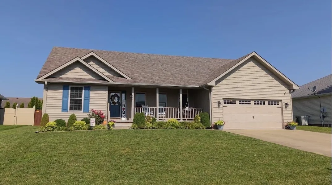 Move-in ready and loaded with upgrades! This beautifully maintained ranch home offers the perfect blend of comfort, convenience, and outdoor living. Ideally located near I-64, shopping, and restaurants, you'll love the easy access while enjoying a quiet neighborhood setting. Step inside to find an inviting open layout featuring granite countertops, large private suite with walk in closet, and modern finishes throughout. The home has access to a smart Vivent security system with front and back cameras, keyless entry, and a thermostat you can control from your phone-perfect for peace of mind and everyday ease. Out back, relax under the covered deck or entertain by the large above-ground pool complete with a wrap-around deck and privacy fence. Recent additions include the back porch extension with roof and the full pool setup-making this home as functional as it is fun. Don't miss this rare...