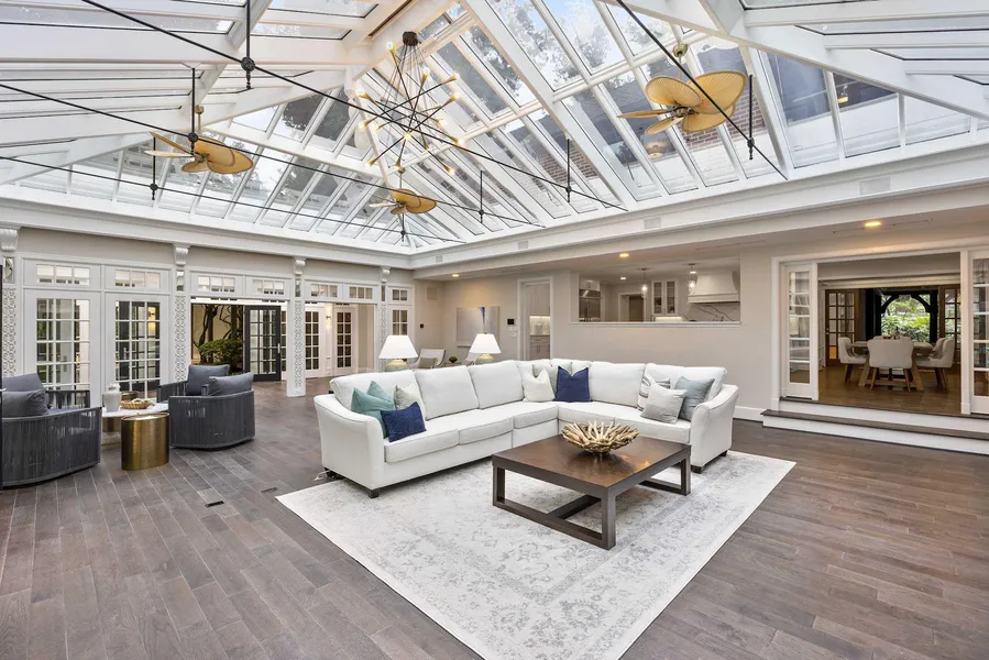 Steps away from Potomac Village, discretely nestled among towering mature trees on 1.41 flat, idyllic acres, is 9901 Meriden Road, a whimsical red brick tudor. Its classic exterior is an embodiment of old-world Potomac, meticulous in detail and elegant in proportion, giving way to a thoroughly modern interior which still manages to capture the homes original charm. In a stark juxtaposition to the traditional tudor ethos, the interiors are bright and airy, enhanced by natural light flooding in from every single brand-new window. Wide plank espresso domestic oak floors flow throughout, establishing a contemporary cohesion which sets the tone for the rest of the fully reimagined space. The banquet sized formal dining room boasts intricate millwork, sophisticated curved crown moldings, and clever hidden storage solutions. Complementing it is a walk-in temperature -controlled wine room. The chefs kitchen echoes this level of practicality and usability commercial 8-burner Viking range, twin dishwashers, quartz waterfall countertops, and a pass-through to the stunning conservatory help to create a dream space for any chef, whether domestic or professional. Said conservatory, under its glass roof laced with detailed metalwork, is unarguably the homes showstopper. A set of French doors affords direct outdoor access and seamlessly blends into an ethereal window wall. A modern feature wall complements ornate detail framing the entryway. The main level primary suite is of a caliber which matches the rest of the home. Its spa-inspired marble bath boasts an oversized shower lined in luxurious Bianco Puro marble tile as well as a floating freestanding tub. Upstairs, a second primary suite once again offers sumptuous accommodation via a designer bath and dual walk-in closets complete with built-ins and a large center island in one of these spacious closets. Secondary bedrooms have not been neglected and are each ample in scale, serviced by unique baths, each featuring stylish, modern tile design. Intricate tile is also a highlight in the conveniently located laundry room, completing the upper level. Throughout the home, a wifi-enabled Control4 system manages surround sound, while a new roof and HVAC units provide a sense of security. This sense of security continues outside, with new sod and a full French drainage system surrounding the property. Stepping outside of the large screened-in porch with cathedral ceilings, an entirely renovated pool, complete with a new energy-efficient heater and flagstone surround, offers a stunning supplement to the lush green backdrop. Unparalleled in its close-in location minutes away from major airports, world-class dining, first-rate entertainment, and superior shopping, not to mention some of the very best public and private schools in the nation, 9901 Meriden Road is a thoroughly unique home and fantastically rare opportunity.