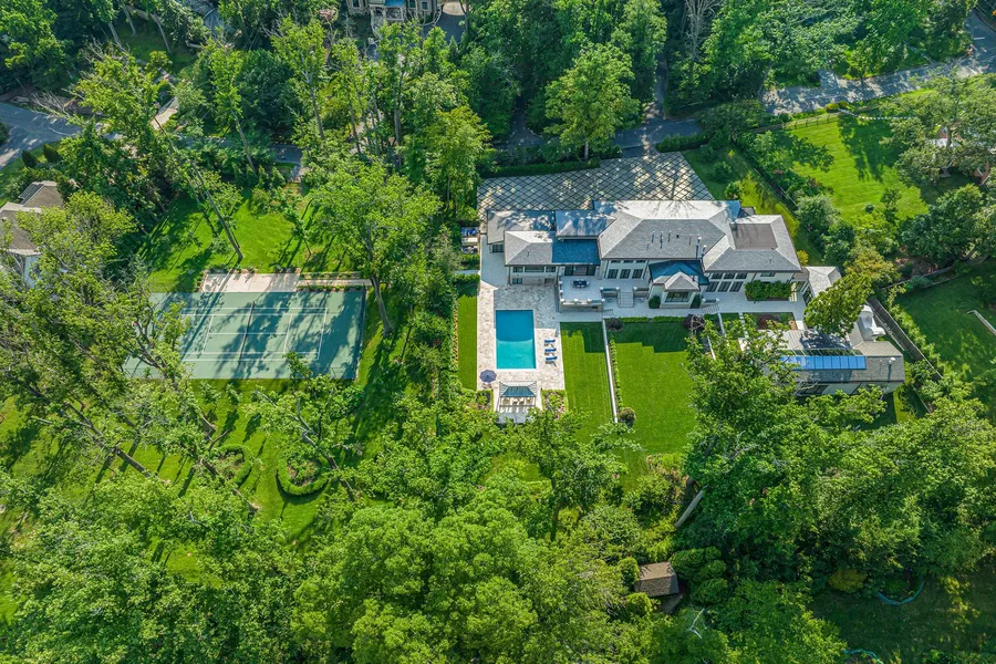 Prominently positioned yet discreetly tucked away on a quiet, winding section of famed Fernwood Road in legendary Bradley Hills Grove, this is one of those truly special homes where not a single detail has been overlooked. Painstakingly reinvented with obsessive attention to detail and the finest international materials, all 15,000 square feet of living space has undergone a complete transformation the result of which is an estate with an old soul clad in contemporary finishes. The driveway, with its intricately inlaid criss-crosses of grass, evokes a distinctly Californian charm conveying a sense of airiness carried throughout the home. Light floods the 19 foot greeting hall and gives way to a stunning open-slab glass staircase whose transparency allows light from the double-height wall of windows beyond to permeate inwards. Fine workmanship and top-notch materials are evident everywhere, an example of which can be seen with custom built imported interior doors. Elegantly proportioned formal spaces live up to the substantial square footage, enabling entertaining on the grandest of scales. Yet, the thoughtfully designed floor plan is equally apt at accommodating everyday living. As the heart of the informal space, the chefs kitchen boasts an oversized quartz-topped center island and two large windows letting in abundant natural light. Sleek European style cabinetry conceals a full suite of top-of-the-line Miele appliances, including a 48-inch commercial range and twin wall ovens. A large primary suite completes the main level, facilitating multigenerational living. Reaching the upper level via stairs or one of two elevators, the second primary suite, with its raised ceiling, has three sets of French doors which reveal sweeping views of the rear garden and pool. Its spa-inspired bath features twin floating vanities, a freestanding tub, a walk-in shower concealed by custom smoked-glass doors, and, along with every other bathroom in the home, radiant heated floors. The custom dressing room is equally minimalist with dark mirrored doors concealing all shelving and a large center island. Amenity-rich, the estate boasts a fully-equipped covered outdoor kitchen with Wolf appliances, as well as an extensive stone terrace. The terrace steps down to an immaculate patio housing the newly resurfaced outdoor pool with automatic retracting cover and a charming gazebo beyond. The indoor swimming pavilion, gym, hammam, and steam room affords year-round usability. Back outside, manicured lawns extend into the treeline, which creates a canopy of privacy along all 2.77 acres of space a hardly believable acreage for close-in Bethesda. Built like a fortress from concrete and steel, commercial grade systems work behind the scenes to run the estate, not limited to twin generators, a new roof, new sprinkler system, new contemporary garage doors, no less than eight HVAC units, and a comprehensive audio/visual system encompassing surround sound as well as security video surveillance. Unparalleled in design and execution, 8801 Fernwood Road is premium in every square inch. Combined with its rare large lot in an incomparable location blending privacy and accessibility, this is a home for the most discerning buyer and undoubtedly one of Bethesdas great estates.