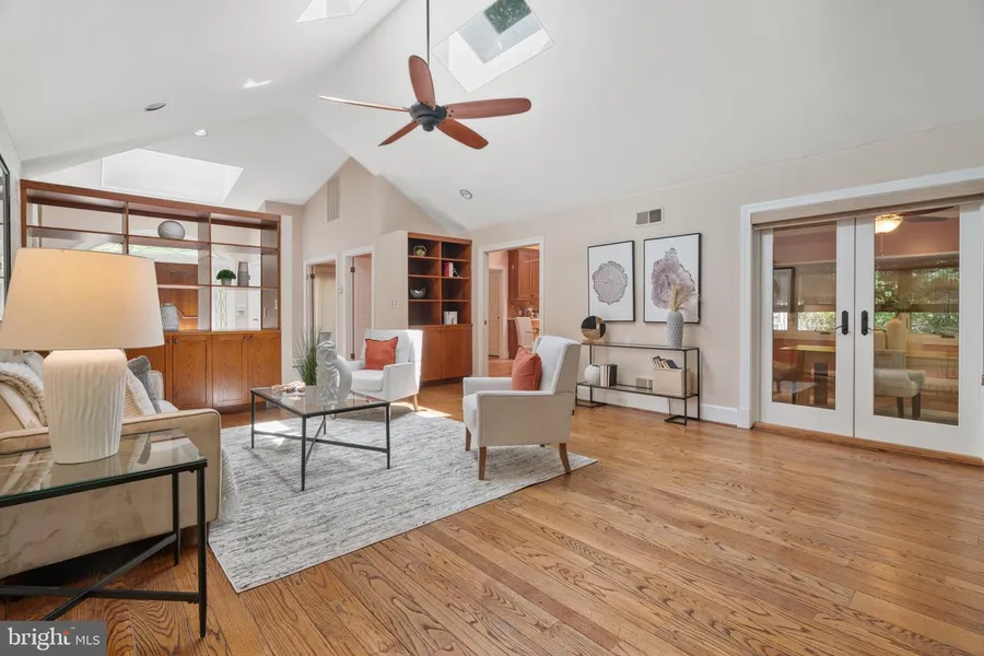 Welcome to a stunning rambler-style luxury home within the Norbeck Knolls community, nestled in the charming city of Silver Spring, adjacent to Olney, Maryland. This beautiful property is set back from the cul-de-sac on an expansive 2.01 acre lot surrounded by mature, majestic trees. Your drive up to the 5 car motor court is punctuated by a graceful Chinese Maple, greeting you and your guests as you arrive. Boasting a stately primary bedroom with dressing room and expansive primary bathroom suite, three spacious bedrooms, three additional rooms on the lower level, and six bathrooms, the home provides ample space for you and your loved ones to live comfortably. With a total of 6,762 square feet of interior space, this home is perfect for those who love to entertain or simply stretch out and enjoy the finer things in life. As you step inside, you are greeted by a captivating great room that features elegant french doors between the rooms allowing natural light to flood the space. The gleaming hardwood floors add warmth and sophistication to the room, while the cozy fireplace invites you to relax and unwind on chilly evenings. The gourmet kitchen is a chef's dream, complete with custom cabinetry, stainless steel luxury appliances, and granite countertops. The separate Sub-Zero refrigerator and freezer, double ovens, and Wolf cooktop make meal preparation a breeze, while the kitchen island provides ample space for elaborate cooking demonstrations or casual dining. The bedrooms are spacious and adorned with beautiful hardwood floors, providing a serene sanctuary for you to rest and recharge. Skylights throughout the home bathe many rooms in ethereal light, creating a bright and airy atmosphere. Wide hallways and doorways add a touch of architectural elegance throughout the home, enhancing the overall ambiance of comfort and style. Care was taken to ensure the home is ADA accessible and can accommodate various mobility needs for every stage of life. The lower level of this inviting home offers a retreat that is sure to amaze the entire family. Featuring a bountiful family room, wet bar, gaming table space and built-in book cases to stun your inner bibliophile. Bonus rooms on this level can be used an way you wish - all three rooms offer spacious closets, recessed lighting, plush carpeting, and access to this level is available from the entry foyer or directly through the garage and side door of the home. This property offers 4+ sprawling acres on two separate lots, providing plenty of space for outdoor activities and relaxation. The wooded surroundings offer privacy and tranquility, making it the perfect retreat from the hustle and bustle of everyday life. The three door garage and spacious motor court provide ample space for your vehicles, motorized toys and storage needs. Overall, this home has been meticulously designed and maintained to provide a living space that exudes both functionality and charm. The seller is offering a financing opportunity should you be interested in this home and the adjoining 2 acre lot. Contact the listing agent for detailed information. Don't miss the opportunity to make this stately property your own.