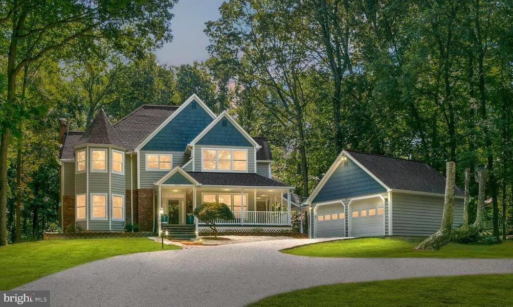 Discover Your Private Retreat in This Exquisite Luxury Home Nestled on nearly an acre of tranquil woodlands, this stunning residence offers a serene escape from the hustle and bustle of D. C. living. As you approach through the private electric-gated driveway, the charming Victorian-styled turret and inviting wrap-around covered porch set the stage for the elegance within. Step inside to be greeted by a grand two-story foyer with gleaming hardwood floors that flow seamlessly throughout the home. The gourmet kitchen is a culinary masterpiece, featuring a large island, high-end cabinetry, stainless steel appliances, and an adjoining breakfast room. From here, step out onto a beautifully hardscaped patio, where you can enjoy the expansive, fenced-in backyard and watch deer roam through the lush woods year-round. On the main floor, the dining room dazzles under a Swarovski crystal chandelier...