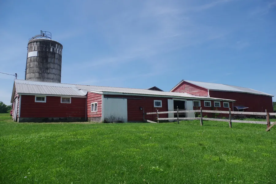 The barn is 32x80 single-storied (stable part), with a hay barn attached at the back (32x60). There are 50 tie and a large leanto addition affords space for young stock. Milking and cleaning equipment has long been removed, but a 16x24 silo remains, it is seal, bottom-unloading, and intended for grain. The attached milkhouse is 16x20.