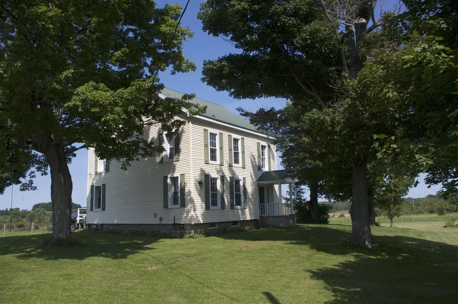 Gone through A-Z: refinished original plank floors throughout, new kitchen made by Amish craftsman, 4 original Rumsford fireplaces, 3 story cherry staircase, open concept with hand-hewn beams exposed. 3BR, 2 baths, beautiful country location w/360 degree views, upscale and quiet. New furnace. House sits off the road, superior homes surround.