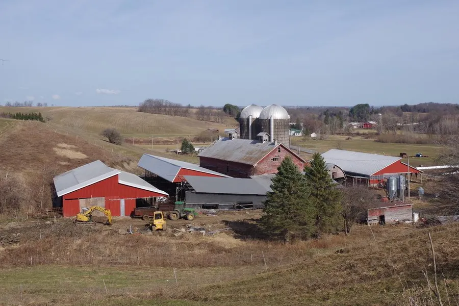 There is a newer 60 cow freestall (50x100 - room for up to 50 more), a large feeding barn, a newer 36x130 covered barnyard. Most of the young stock is in a newer 60x128 pack barn that holds 75. There is also a 30x70 solar barn for calves. Surplus youngstock can be housed in the old heifer barn (poor condition). Thue freestalls and the heifer facility feel manure into a cement 60z120 holding tank for manure storage.