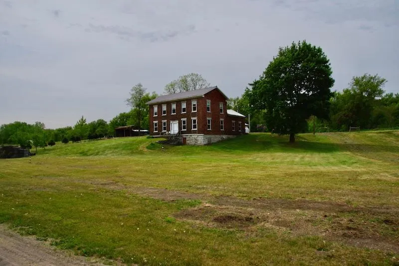 The home has a open floor plan on the first floor with a large brick-lined country kitchen and a huge interior window to the dining room, which in turn opens to the living room. There is a bath on each floor with 3 bedrooms upstairs. Included are a wood cookstove, gas range, 2 refrigerators, 3 freezers, a washer and a drier. It has 2576 square feet of living space and a hidden walk-up attic. There are 2 drilled wells; the new one is 200 deep and has a modest amount of sulfur while the old one, used in summers, has pure sweet water and is only 60 deep.