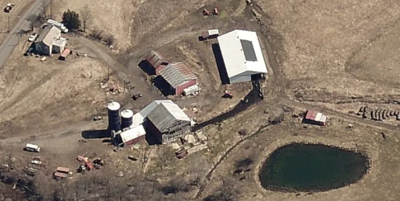 The main barn is like new and measures 60x104. It can be put to many purposes, but right now is used for hay storage and chickens and heifers. A drive-by manger is across the front and solar panels are on the roof. The former dairy barn has a completely new roof, trusses and everything. It is 55x75 and is used as a large pen for goats. It has a cement barnyard and ties own drilled well. . There is a 16x24 leanto with a pen that spans between the main barn and the silo room, which is attached to a 25x32 storage barn. There are 2 Harvestore silos, 20x60 and 20x32. There are 2 more principal farm buildings, a 23x43 storage barn and a 40x48 insulated shop. It has a sales desk and inner office. And a second drilled well.