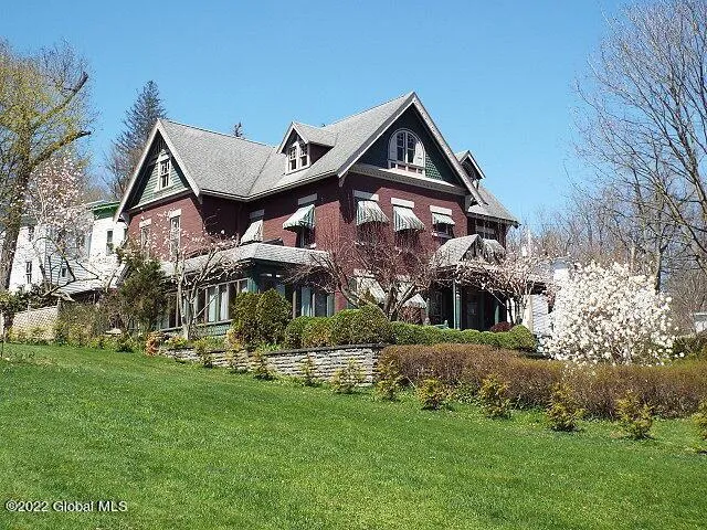 Elegant and meticulously maintained historic 5 bedroom, 2.5 bath Victorian home set on a corner lot in the village of Fort Plain. The spacious entry foyer features a vintage Dutch door, the grand staircase, and plenty of original woodwork. The decorative hardwood floors in each room reflect the era of this home. Many stained-glass windows throughout including a unique stained-glass door in the formal dining room. The updated kitchen features stainless steel appliances, the original ceiling, and custom designed oak cabinets. The parlor/sitting room contains a traditional faux fireplace. The airy sunroom with ceramic tile is a nice place to relax and includes a ceiling fan, skylight, and gas stove. This home is on the National Register of Historic Places.