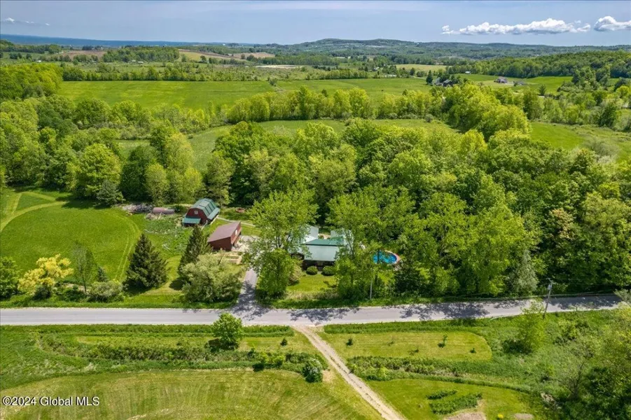 Privacy and self-sufficiency await at this 21-acre property! Lovingly maintained and loaded with updates including electrical, tankless on-demand water heater, whole-house Generac generator, and more. Experience farm-to-table living with vegetable, fruit, and herb gardens, and a chicken coop for fresh eggs daily. The pond, stocked with bigmouth bass, offers fishing at your doorstep, while the opportunity to pick your own Christmas trees each year makes holidays special. The estate features a heated workshop, ''man-cave,'' heated 2-car garage with kitchen, pool, and full-size pickleball court. The acreage continues across the road, complete with water/sewer and electric, offering the potential to add a second home or subdivide. Most equipment needed for maintaining this sanctuary included!