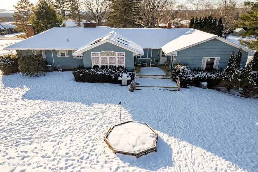 Executive ranch situated on 1.4 acres in the town of Amsterdam. This property is divided into a north & south wing w/ a central common area. 6 bedrooms, 2.5 baths, eat-in kitchen, formal dining room, oversized living room w/ wood burning fireplace, heated solarium all located on the main floor. The basement features a laundry room, bar w/ brick fireplace, rec room & plenty of storage. Oil heat & central air. The grounds feature a winding driveway that leads to a 2-car attached garage. Attached deck accessible from the primary suite, kitchen & solarium. Heated gunite pool & pool house. Mature trees & lush landscaping. Broadalbin-Perth School District. Adjacent 4.44 undeveloped lot next to this home also for sale. Home needs TLC and is being sold as is.