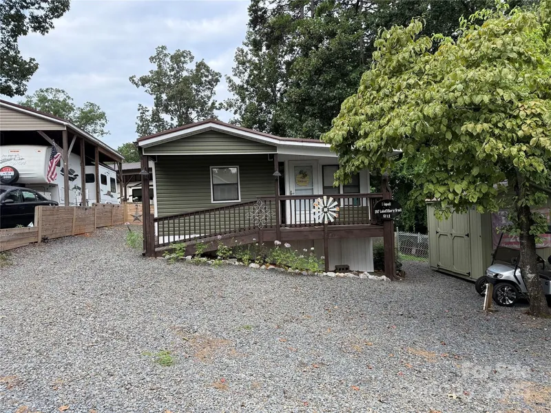 Plenty of space inside and out with this great unit. Double lots, Updated 1990 Park Model. Kitchen and bath were redone two years ago. Beautiful granite counters, new cabinets with plenty of storage. Refrigerator, stove and washer/dryer 2 years old and to remain. Metal Roof is 6 years old. HVAC is 5 years old. Queen in primary and twin in secondary bedroom. 2 storage buildings, new concrete block wall, fenced back yard for your dogs and a doggy door. The screen porch out back is awesome. Incredible view of the water in the winter and a peek-a-boo in the summer. Who wants to make this great unit their "Happy Place"? 2024 Ez-Go Valor golf cart available for $9k. All buyers must be with a realtor to gain entrance to the community.