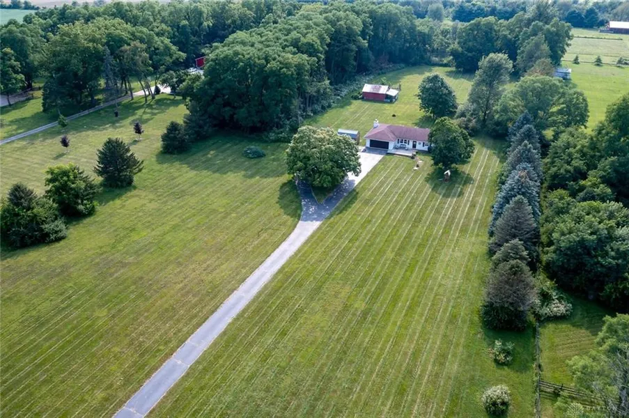 Quiet 5-acre property on a no-outlet street in Northmont City School District. 3 bedrm, 2 full bath, attached 2-car garage move-in ready ranch on the market just in time to enjoy the apple trees and pumpkin patch. 23 x 20 barn with chicken coop, one animal stall and laddered overhead storage. 16 x 12 shed with two lofts. Convenient circular turnaround driveway.