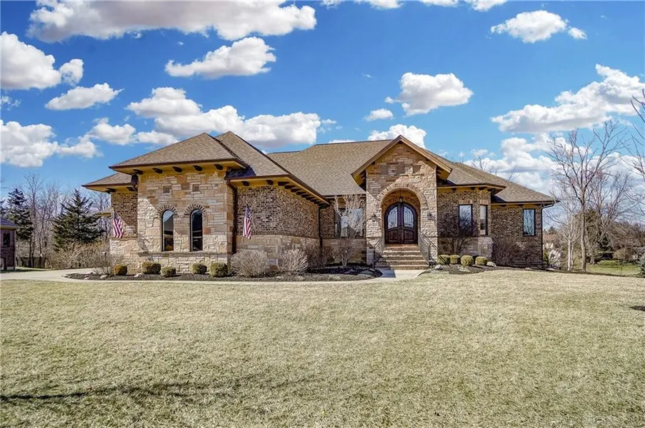 Welcome home to this stunning Tuscan inspired Clemens built estate in the Trails of Saddle Creek in Washington Twp. The welcoming and open split-floor plan ushers guests into the large great room with an abundance of natural light, cathedral ceilings, and custom patterned floor. The large gourmet kitchen overlooks the living area and features Thermador appliances, Amish handcrafted cabinets, and an eye catching island. Adjacent breakfast room leads to the elevated veranda with fireplace overlooking the 1+ acre lot and fully fenced backyard. Main level Owners Suite is large and features spa-like bath with custom tile, soaker bathtub, and walk-in closet with built-ins. Main level also features front facing office, dining room with coved ceiling and built-in hutch, large mudroom, and 2 additional spacious bedrooms with attached bath. The wide wrought iron staircase leads down to the full fi...