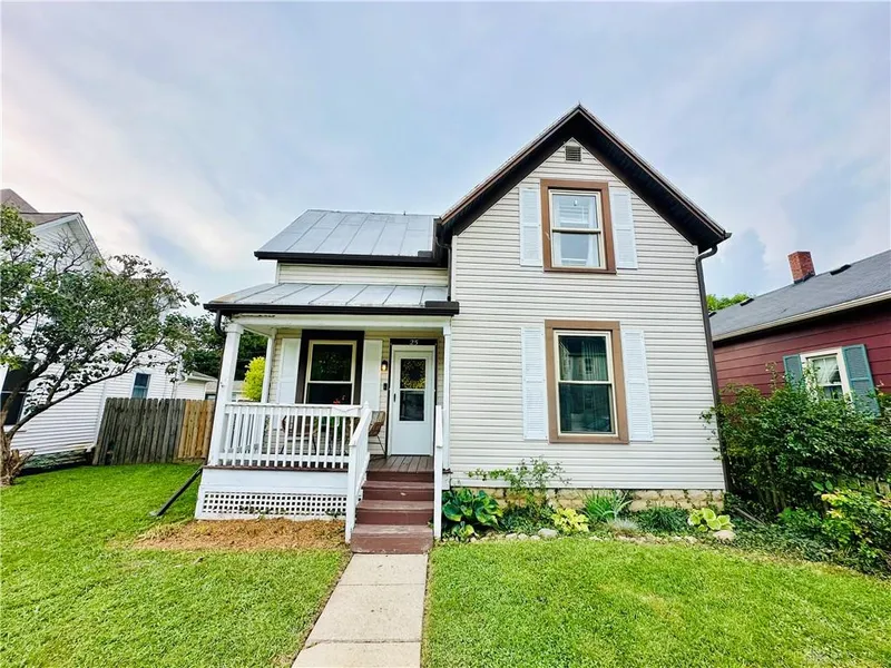 You have to check out this cute and cozy home nestled in Brookville Local School District within walking distance of parks, local schools, downtown shopping and food, the bike trail and more! You'll immediately feel at home the minute you walk in! You'll enter into the dining room bursting with character with the wood trim and detail around the large windows allowing for plenty of natural light, the custom built-in shelving for not only function but also aesthetics and the exposed brick chimney. This room is open to the living room making the space feel much larger creating a great area for the whole family to enjoy! The charming kitchen provides plenty of space to cook and entertain. Upstairs you'll find 3 bedrooms with hardwood floors throughout the area. The house has an adorable front covered patio perfect for relaxing but the real kicker is the back yard - completely fenced in, covered back porch, lovely landscaping and paver patio. You'll look forward to spending your evenings out there! The nice sized barn in the backyard has tons of space for storage and hobbies, access to the back alleyway and a 2 car driveway out back. Don't miss the opportunity to make this house your home sweet home! Updates include: new dining room and kitchen lighting, new bathroom lighting, toilet and floor, and AC unit replaced in 2022.