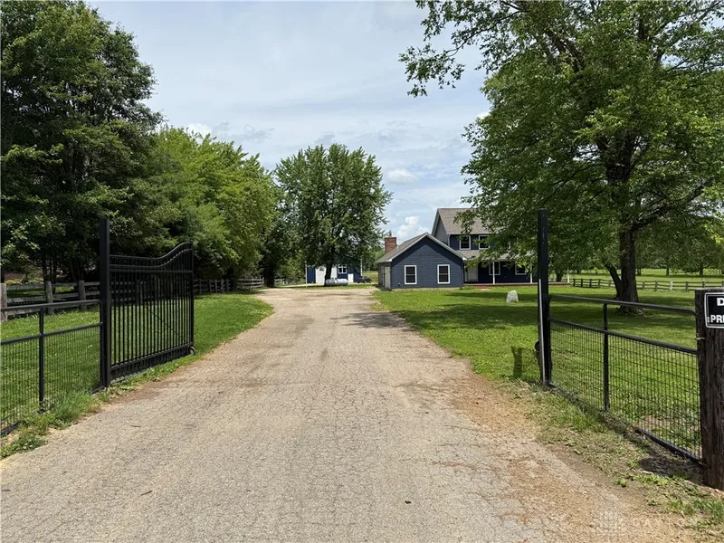 WOW! Don't miss this opportunity to own a completely fenced and gated 5 acre property with a freshly renovated home! This amazing property features an attached heated garage along with a pole barn, storage and 3/4 acre stocked pond. House bathrooms completely new top-to-bottom, along with new interior doors, new flooring, and freshly painted. There was a fire in February 2023, but property has been completely renovated; better than before. Property offers city water, however, it has a well that is deactivated. Pole Barn (42X85) offers many features and is approved for Agritourism Activities and Zoning. Pole Barn has 3 bedrooms with party room, appliances stay in barn, 3 full baths and plumbed for 2 additional baths, full kitchen plus partial in front room and plumbed for 3rd, great room with office, handicap accessible with ramps and elevator, along with garage in barn that will accommodate multiple cars and room for 40' RV. In-Law suite with care takers quarters 100% differently abled accessible located with phenomenal view of pond and nature located in the sharply built barn. Room for horses and livestock. Property presently under CAUV taxes. Extremely impressive property; check it all out!