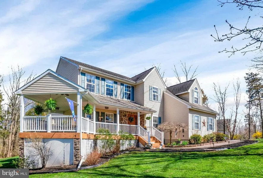 Don't miss the chance to own your dream home in beautiful Clover Meadows! This warm and welcoming home has so much to offer, all on an expansive, private lot. With room for everyone, the spacious floorplan is ideal for today's lifestyle. The eat-in kitchen includes a moveable island with granite top and is open to the lovely two-story family room with gas fireplace. Doors from the breakfast area open onto the deck with beautiful views. The freshly painted living room and dining room are great for gatherings, and the private first-floor office accommodates work from home. Upstairs, the owner's suite includes a cozy sitting area, large walk-in closet, and bathroom with separate tub and shower. Also on the second floor are a hall bath and three additional bedrooms, one of which is currently used as a craft room. As a bonus, hardwood flooring extends through most of the first and second floors. The fabulous, freshly painted walk-out finished basement offers a large amount of additional living area. Here you'll find a sizable game room, full bathroom, and a workout room with French doors that could also be used as a fifth bedroom. At almost an acre and a half, the lot has plenty of room for outdoor activities and includes a wooded area with a creek view. Enjoy relaxing on the beautiful wrap-around front porch or on the deck overlooking the backyard and woods. The parklike yard is a nature lover's dream, graced by lovely plantings and visited by morning songbirds. The driveway and additional parking area adjacent to the road can accommodate six to eight cars. Square footage and room sizes are approximate.