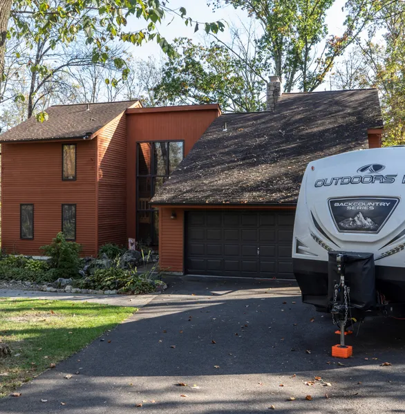 Tucked away on a peaceful wooded 2.5 acre lot, sits a beautiful Contemporary 5/6 bedroom home surrounded by nature and a well executed landscape plan. Plenty of driveway and parking will make any car enthusiast or RV owner very happy. When you enter the home you are greeted by so much natural light and open space as you walk through the magnificent great room with oak hardwood flooring, a 2 story stone wood fireplace, and a cascade of floor to ceiling sliding glass doors that open up to the 2-level deck. To the right of the great room, you will find what could be an office, library, dining room, playroom, or anything you would like. The kitchen is on the opposite side complete with granite counters, brand new refrigerator, tiled flooring, and a dining area. Off the kitchen is the sunroom, a room you could spend a great deal of time having your morning coffee or afternoon tea gazing over ...