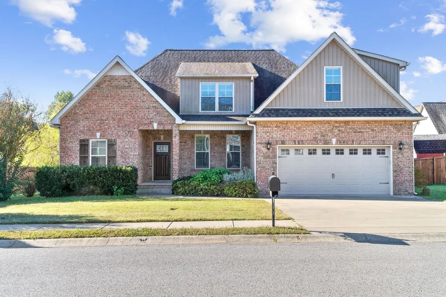 Well cared for Sango home! Owner's suite on main w/full bath, garden tub/sep. shower/WIC, formal dining, HW floors, large living room w/gas fireplace & custom built-ins, kitchen w/granite counters, gas stove & SS appliances to include fridge, separate laundry room w/tile flooring & utility sink, 22' deep garage, guest bedroom features walk-in closet & walk-in attic storage. Huge bonus room! Gorgeous curb appeal with beautiful landscaping to include blueberry bushes! 40 mins to Nashville/Ft. Camp