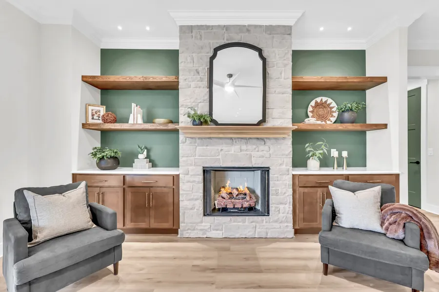 This enormous ranch home on a slab offers spacious living in an established neighborhood. Boasting 3 bedrooms and 2 full bathrooms downstairs, along with a bedroom and bathroom upstairs, it provides ample space for family and guests. The oversized bonus room is perfect for entertainment or extra storage. Each bedroom features a walk-in closet, and there's an additional 16x06 finished storage room for all your needs. Enjoy the covered patio and front porch for outdoor relaxation. The 3-car garage adds convenience, while unique details and high-end finishes throughout elevate the home's appeal. Located just minutes from grocery stores, restaurants, and easy interstate access. Seller will pay up to $20,000 towards closings costs and buy down- to be added onto base sales price