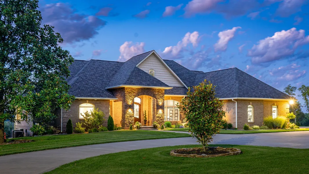 This stunning estate in the country spans 28.9 acres and features 6,300 sq. ft. of living space. It includes a luxurious movie theater with its own candy shop area and an illuminated movie marquee. The downstairs boasts a full kitchen and a storm shelter with reinforced concrete walls. The home also features a sunroom with pine, high ceilings, and brick walls. Additional amenities include a 40x60 shop with 12-foot doors, two ponds, and an in-ground pool with an automatic retractable cover. Each suite has a full bathroom. The property is graced by the scenic Cumberland River at its rear, providing unparalleled enjoyment and tranquility.