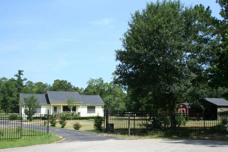 Home on five acres minutes from The Woodlands. 1,586 sq. ft., 3/2, built in 1996. 20x20 tractor shed, storage shed. Land is cleared under scattered trees. No flood plain. Wrought iron fence at front. Unrestricted per Seller. What a great opportunity!