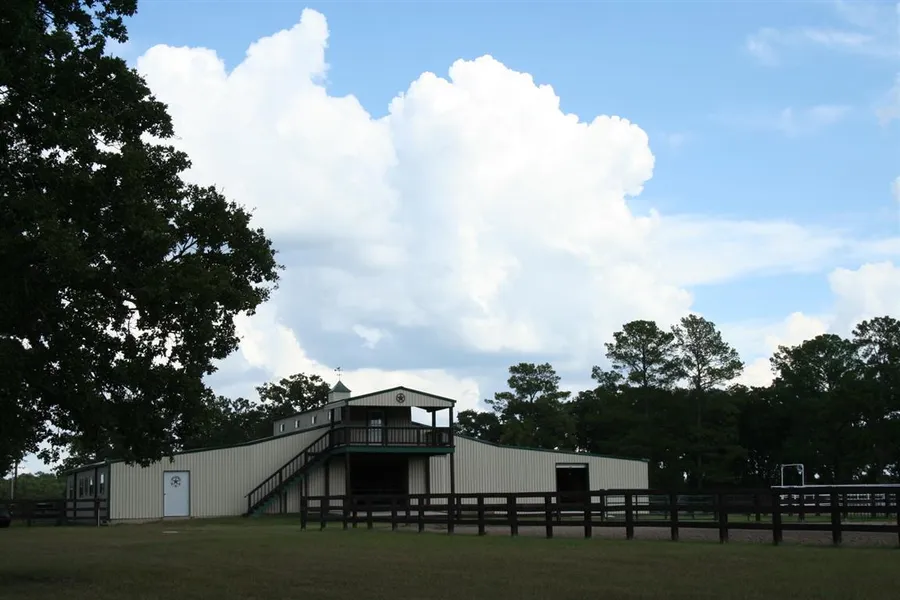 39.3 acre premier horse estate located in MISD and the heart of the Sam Houston National Forest. 2166 sqft home, barns, outbuilding are all built with architectural uniformity and encompassed by thousands of linear feet of black rail fencing. Two barns totaling 20 stalls, arena, turnouts, improved pastures. Two beautiful ponds with decks pavilions and countless other amenities. The perfect mix of improvements recreation and wildlife.