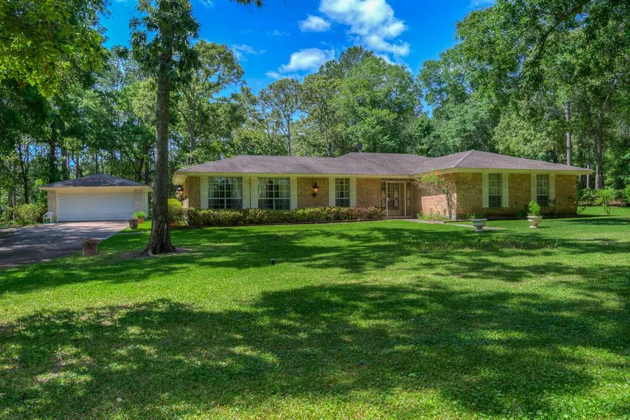 Country living at it's best in this beautiful acreage community. Minutes from Montgomery, and Magnolia. Home nestled under the trees on 5 acres with pond, 2 barns, basketball court. Kitchen has granite counter tops. Seller will sell additional 5 acre lot if desired. Huge workshop/barn 40x50 with roll-up door, new water well, and new AC & Heat inside and out. Additional open barn/stable. Beautiful older home in a park-like setting. Horses welcome.