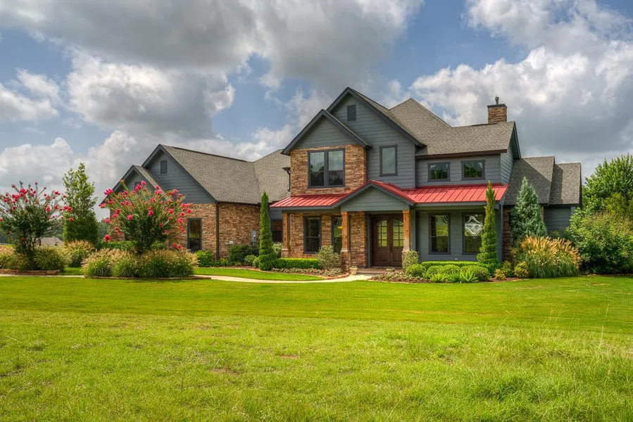 Own your own private piece of country in the beautiful gated community of Perfection Ranch. Over 6ac, 1 ac of thick Bermuda grass & 5 acs of Ag exempt native hay w/elegant home. Ceiling soars to 24' in family rm w/rock fireplace floor to ceiling. Media room pre-wired for sound, also pre-plumbed & pre-wired for a kitchenette as you enter into the media room. There is space for a future room, 17x18. Spacious laundry room off of master closet. Enjoy your outside kitchen & covered porch
