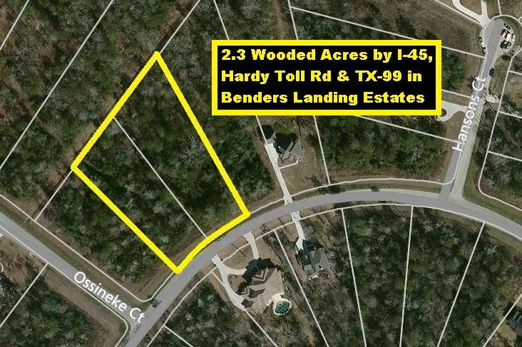 New Price! Benders Landing Estates 2.3 Wooded Acres by Hardy Toll, I-45, I-69, TX-99. No MUD District! Central Water System! Well Not Needed. Needs Septic. Underground Utilities. Benders Landing Estates has Multi-Million Dollar Clubhouse w/Banquet Rm & Fitness Ctr. 2 Stocked Lakes to Fish, Canoe, Paddleboat. Pavilion w/Tables, Drinking Fountain, Grill. Resort Style Pool w/Kid Splashpad. Soccer/Baseball Fields. Lit Basketball/Tennis Courts. 200 Wooded Acres w/Paved Trails. Minutes to Woodlands & Exxon Complex. 17 miles to Lake Conroe. 26 miles to Downtown Houston. Property includes two adjacent lots, which are also available for sale separately.
