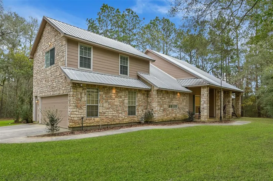 Welcome to the best of both worlds-a Sportsmans Paradise and a beautiful custom home. The home and 1.6 acres are in the gated subdivision of Chasewood. The remainder of the approximately 77 acres is unrestricted. Included is a 7-stall horse barn with water & electricity. Stocked pond. The east side of the property meets up with the San Jacinto River. White tail deer, hogs and ducks. Additional access to the land is available. The home is 5 bedrooms and 4 and a half bathrooms. The 5th bedroom/suite/game room is upstairs and accessible through the garage. The kitchen has a cook top island, granite counters and backsplash, along with plenty of storage. Tile throughout the high traffic areas. Full bath near the laundry room-easy access for a quick shower after working and playing outside. Must see this home and property in person to appreciate all that it has to offer! Make your appointment ...