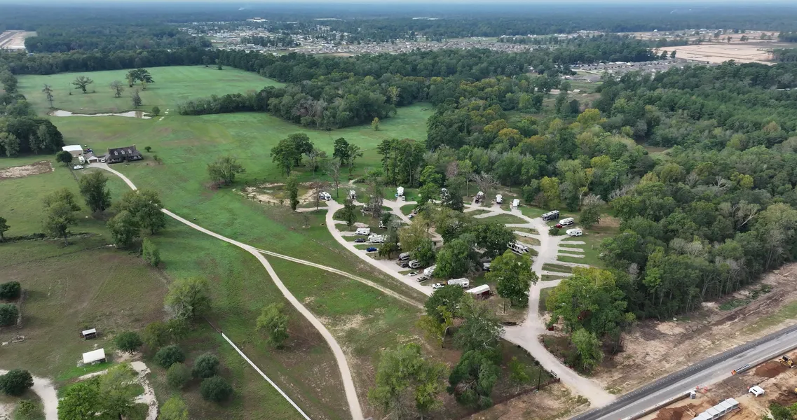 Approximately 112 acres of country living along Caney Creek. Beautiful 3-bedroom 2.5 bath home, built in 2017 with an implement barn for your tractor and/or hay implements. The front northwest part encompasses approximately 11 acres where you'll find a 49 space RV Park (Income Producing) with room to add more spaces. Caney Creek traverses to the back of the property. The is a current ag exemption in place with a low tax base. This property is set up to pay dividends immediately to the owner through the RV Park operation. Plenty of space for expansion! Excellent location and close to many amenities that Conroe has to offer.