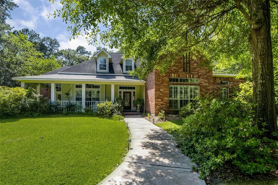 Country Feel close to the City! This beautiful custom built home situated on 2 acres in the prominent Northcrest Ranch subdivision has been lovingly taken care of. One owner. Large rooms with 10' ceilings on the first floor. Stunning Brazilian Cherry hardwood floors on the first floor. Beautiful woodwork, crown molding, and built-ins. Recent interior paint. Excellent storage! Kitchen refrigerator, garage refrigerator, freezer, washer and dryer stay. Large game room with attic access upstairs. 3 central electric A/C units, 1 electric and 2 propane furnaces. Tranquil lot with extensive landscaping. Sprinkler system. RV parking. Fenced back yard. Come hang out on the covered front porch or on the covered back patio. No flooding during Harvey, Imelda or any other time. Room sizes are approximate.