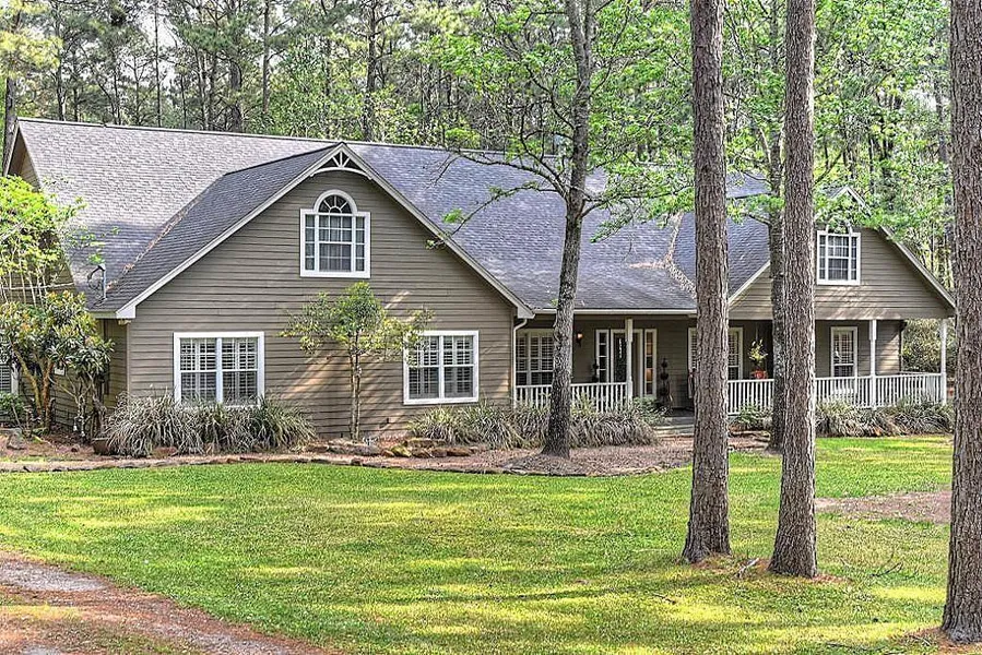 Rambling one-story home in popular Indigo Lake Estates on 3.2+/- acre lot. Covered front and back porches to watch the deer! Kitchen is open to living and breakfast areas. Tons of cabinets and granite counter space. Second living area serves as formal dining for this homeowner, and would also make a great space for gameroom with pool table. Master Retreat with french doors to the covered back porch. Also has one of the two stone fireplaces. Master bath w/Jacuzzi tub, separate shower, his and hers sinks. Barnmaster barn sits near the back of the property, w/2 stalls, tack room and shop area. Property is fenced with driveway gate. Property owners enjoy use of the 160 acre private ski and fishing lake, sandy beach, parks, riding and nature trails, community center. Magnolia ISD