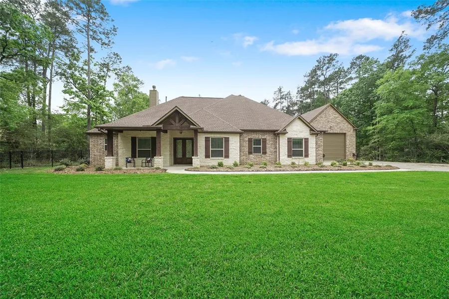Stunning custom 3 bedroom/3 bath home nestled on almost two acres features high end finishes throughout. The spacious, open floor plan lends itself beautifully to family time and entertaining. From the impressive Austin stone fireplace to the impeccably designed kitchen to the wall of windows overlooking the rear yard, no detail has been overlooked. The study/flex room is off the front entry. Massive kitchen island provides seating and serves as the focal point of the kitchen. Stainless steel appliances, extensive storage, double ovens and gas cooktop are hallmarks of this inviting space. Master suite also features views of the rear yard; the bath includes a large pass-through shower, separate tub and dual vanities. Attached oversized two car garage accommodates higher vehicles, while a massive detached, brick garage/workshop with dual roll-up doors provides storage for large RVs, boats or additional vehicles. Virtual Tour: https://my.matterport.com/show/?m=8iU3oe53gts&brand=0