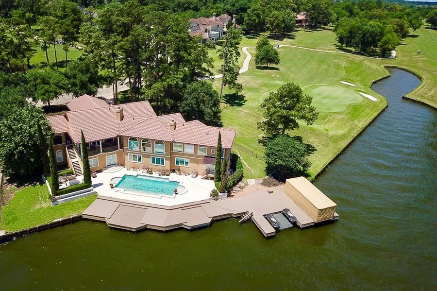 Fabulous Home in The Estates of Bentwater with 186 feet of water frontage & 196 feet on the signature hole of the Weiskopt No. 12. This home has fantastic views of Lake Conroe from every room. Upon entering into the home you will see the fabulous views of the lake from the spacious formal living area and to your left is the golf course. The kitchen, family and the living areas were remodeled in 2017. The kitchen has all new appliances, large Wolf 6 gas burners & grill, Wolf warming drawer, built-in Kitchen Aid refrigerator, along with an island and veggie sink. New granite counter tops & black splash with Austin stone accents on the 2 fireplaces, new wood tile floors. The kitchen is open to the dining and family room. There are two masters bedrooms both with views the golf course green and Lake Conroe. The outside entertaining area is incredible with large pool, new dock, lifts, and remo...