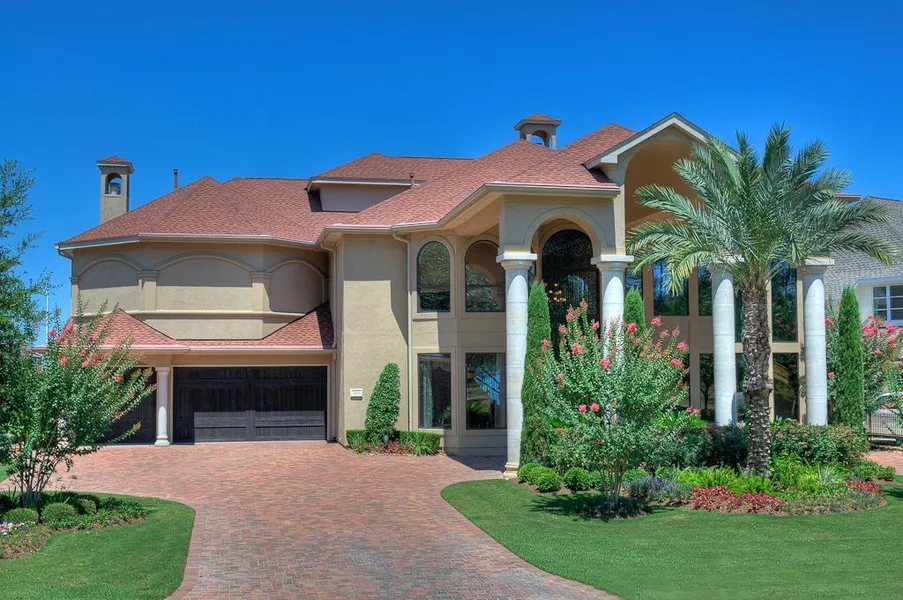 Open water paradise on Lake Conroe in the exclusive Estates of Bentwater. The entire home is light & bright with gorgeous finishes. Elegant staircase in the entry & water views from the lake can be seen creating natural light throughout the home. Open concept chief's kitchen comes with all stainless steel appliances, beautiful granite & makes it a joy to prepare your meals. 2 Master Suites 1 up and 1 down with 3 remaining bedrooms up. Private balconies of for bedrooms up and solid oak wood floors through out upstairs and 24 x 24 Travertine tile on first floor. Surround sound through out the home and media room has projector and screen. The outside living area has lush landscaping, vanishing edge pool/spa, and outdoor kitchen creates a resort style living along with a covered boat dock and 4 jet ski lifts.