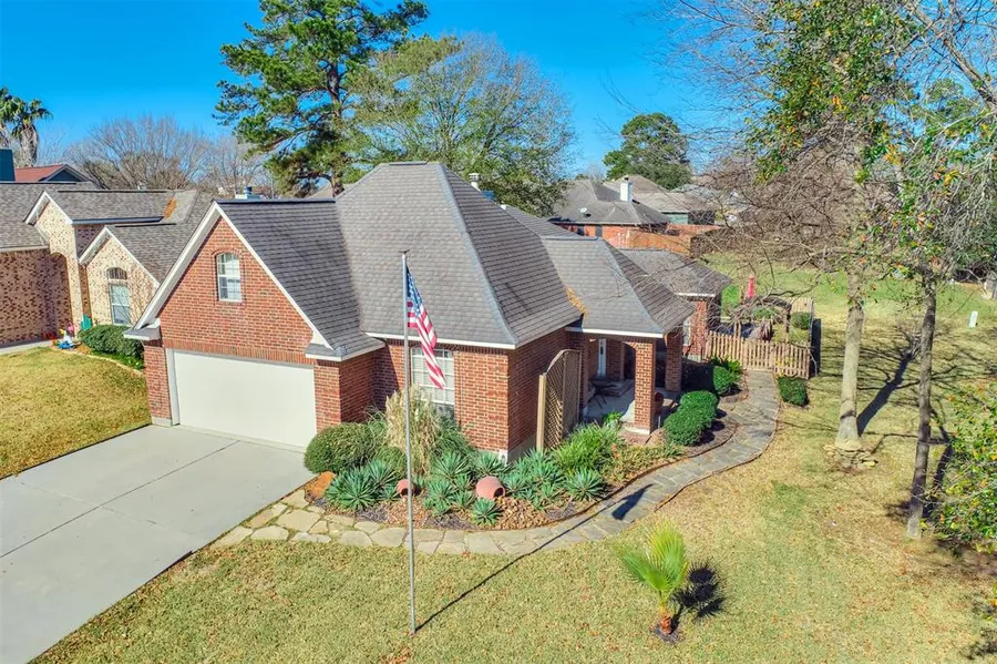 SUPER CLEAN, BRICK CHARMER ON A PREMIUM LOT, STEPS FROM THE LAKE IN DESIRABLE SEVEN COVES/WILLIS ISD. A wide greenbelt wraps around 2 sides of this gently lived in home, offering extra space & privacy from the large back deck, sweet side yard & darling entry porch. Spacious & open layout, this home receives abundant natural light from many large windows. Gaslog fireplace and practical built-ins anchor the living area; White & cream kitchen offers abundant cabinetry, cozy breakfast bar, gas cooking, pantry & french doors to the rear deck - plus large enough to add an island! Previously a 1 story, a 3rd bedroom was recently added upstairs over the garage - and could easily do duty as a craft room, home office, fitness space or homeschool room! Walking distance to the marina, lakeside pool, playground, fishing docs & clubhouse - this is the ideal cozy lake house or sweet home to enjoy. Well...