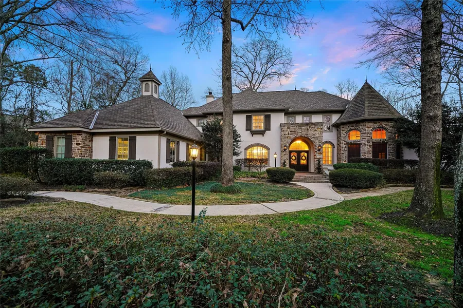 Behind the gates of Old Mill Lake you will find this French Country-style charmer positioned on an approx. 1.3 acre lavishly-landscaped and wooded waterfront lot. This custom home is an absolute stunner, built by JW Neathery. If the amenities of a country retreat are what you've been looking for you do not want to miss seeing this beauty. It boasts of extensive mill work, hardwood floors, travertine, brick accent walls in the dining room/kitchen, Cambria quartz on kitchen counters/island, farmhouse sink, beautiful lighting and high-end newer appliances. Off the kitchen area is additional space, currently being used as game room, but could also serve as a den. Access to the screened-in porch with grilling area is just off the game room and an added bonus for entertaining. The study, with its gorgeous wood details, is a great place to work from home. Behind a pocket door in the study is an additional office space hidden away from the main study. The primary retreat boasts beautiful views of the lake.