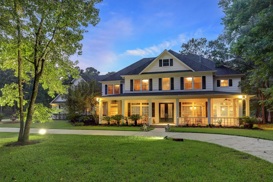 Tranquil acreage living in Lake Windcrest! Experience "welcome home" from a gated circular drive revealing a custom 5 bedroom home with spacious three-car garage. Work from home in the downstairs office or upstairs study nook. Relax in the high ceilinged living area with ample natural light, or prepare a meal on the 6-burner gas cooktop in the kitchen island. Enjoy a massive primary bedroom including a grand sitting area with soaring windows to take in the pond, and an en-suite secondary bedroom nearby. Ascend the imperial staircase to a sitting room and 3 bedrooms before entering the game room with outdoor balcony overlooking the backyard. Enjoy your favorite flick in the 3 row media room with a bar. Take in the Texas air on the spacious deck with pergola on a private pond and nature-filled view. Featuring granite countertops, tile and carpet flooring, remote-controlled living area blinds and primary bedroom drapes and central vacuum. Peaceful seclusion minutes from shopping and The Woodlands.