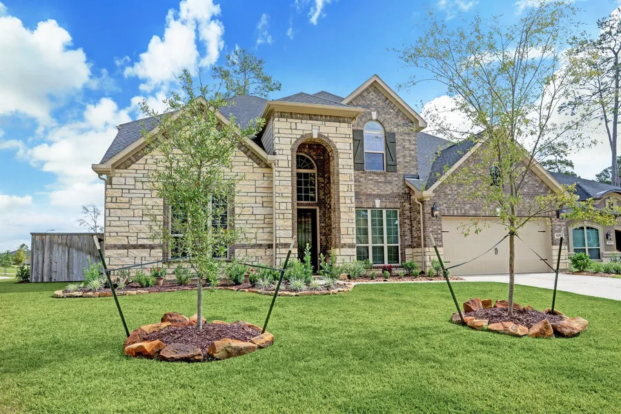 Perfect for a relaxed, versatile lifestyle, this Next Gen home design offers a golden opportunity for various choices of living situations. Ensconced amid stone and patterned brick work, the stellar curb appeal is heightened by the dramatic arched entry that greets arriving guests. Ideal for an intimate family setting or large gatherings, understated sophistication is the hallmark of this beautifully appointed home. Anchored by 18 designer tile, the main gallery travels from the front door past a stunning wrought iron balustrade staircase into the family room resting amid a 42 modern direct-vent fireplace, soaring ceilings and banks of windows that impart view of rear grounds. Swathed in natural light, the culinary-delight kitchen decked with a charming breakfast room, features large eat-in island, Frigidaire energy-efficient stainless steel appliances, subway tile backsplash, 36 five-burner continuous-grate gas cooktop, 30 self-cleaning double oven with convection feature, quiet dishwasher with Orbit clean technology and 42 J-Kraft frameless cabinets, spacious walk-in pantry, under cabinet lighting and premier wood vent hood cabinet. The downstairs primary suite is extraordinary with coffered ceiling, trio of windows and luxurious bath boasting recessed shower with mesh tile flooring, oval garden tub, opaque window at tub, semi-frameless glass shower enclosure, quartz countertops, contemporary Moen chrome faucets and rain shower head with matching bath accessories. An added bonus is the spacious, climate controlled walk-in closet with shelving. Additional secondary bedrooms and lofty game room are well appointed. Perfectly sited to ensure privacy, there is a separate guest suite replete with kitchenette, cheerful light-filled living room, bedroom and full bath. Exceptional quality embraces this custom home as it reflects a blend of inspiration and eye for detail at every turn.