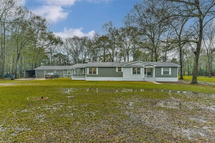 Country Living with City Convenience....if this is what you are looking for, look no further! This fabulous property has been well-maintained and sits on a gorgeous 2+ acre lot with towering shade trees speckled throughout. This 3/2 home has recently been painted inside and out along with a new roof put on 10/2021. With a gigantic eat in kitchen looking into the formal dining room, you will be able to entertain with ease. The family room has a wood burning fireplace and tons of natural light. Washer, dryer and refrigerator included. A 3 car garage with workshop area & bathroom is detached with a wrap around lean to to store all your lawn equipment. Another storage shed at back of property makes it easy to get to your tools. Horses allowed. Lots of space for vehicles, boats, RV\'s. Come home after a hard day\'s work and sit on your covered porch and enjoy the peaceful breeze. Easy access ...