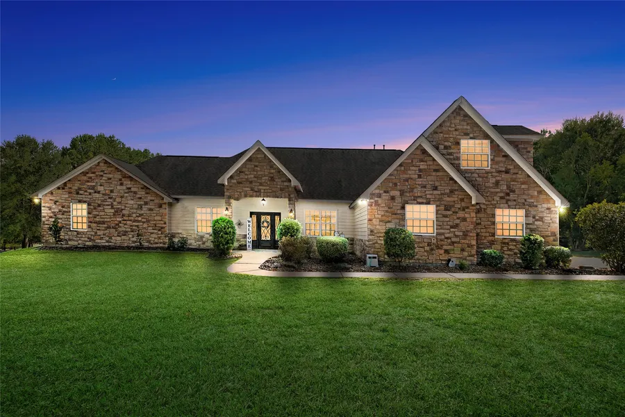 Good bye City life! Claim this Austin stone Hill Country ranch on two plus Acres. Windows frame pastoral scenes of verdant green lawn and cross fenced pasture. Bring your own fishing pole and horse to fully enjoy this rustic retreat with neighborhood fishing lakes, park and playground. Offers a huge Shop and Loafing Stall. Designed with the intent to spread out and roam with your horse and 4H-animals. It's a sprawling one story forever plan. The split style creates a private Primary Bedroom, large light filled gathering spaces plus a giant Gameroom up. Amazing walk-in storage or easy space to finish out. The Kitchen is wonderfully sized with preferred gas cooktop, island, breakfast bar and tremendous counter space and storage. Love the peace and quiet of this "back of the neighborhood" tucked away location. Recent carpet make it ready to move in. Acclaimed MISD! Quiet leisure awaits. Upscale enclave of acreage estates gives you an "away from it all" feel while still being conveniently located to what you want to do and see. All within 2 miles of Old Downtown Montgomery with shops, eateries, small town festivals, flagship grocery; 5 miles to Margaritaville and Lake Conroe's watersports; 25 minutes to The Woodlands; 40 minutes to IAH Airport.
