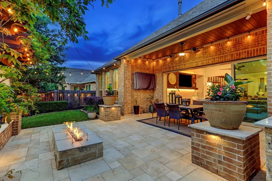 Live Beautifully in this Unique one-story floor plan with easy flow from entry to kitchen, wine room, dining, huge family room, private study, and media room. The chef's kitchen is in the heart of the home with upgraded appliances, gas cooktop, ice machine, custom cabinetry, under mount lighting, large island, Quartz counter tops & huge walk-in pantry. Butlers pantry features beverage & wine refrigerator. Split floor plan with two bedrooms ( one being used as a custom closet which can convert back to bedroom) Large primary suite has Kohler tub, separate shower & spacious walk-in closet. Large bedroom with ensuite at the front of home is perfect for guests. Whole house has 24KW generator, water filtration system, security cameras. From the family room a sliding glass wall overlooks a covered patio with custom outdoor kitchen, pergola, landscape lighting & large firepit making this an outdoor oasis. 2 car garage, epoxy flooring & floored attic for lots of storage. See upgrade list